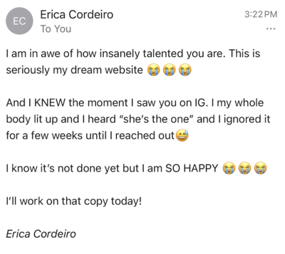 If you don’t have your copy or images yet, that’s totally fine, we can plan your project timeline around it, and I can recommend trusted copywriters if needed.